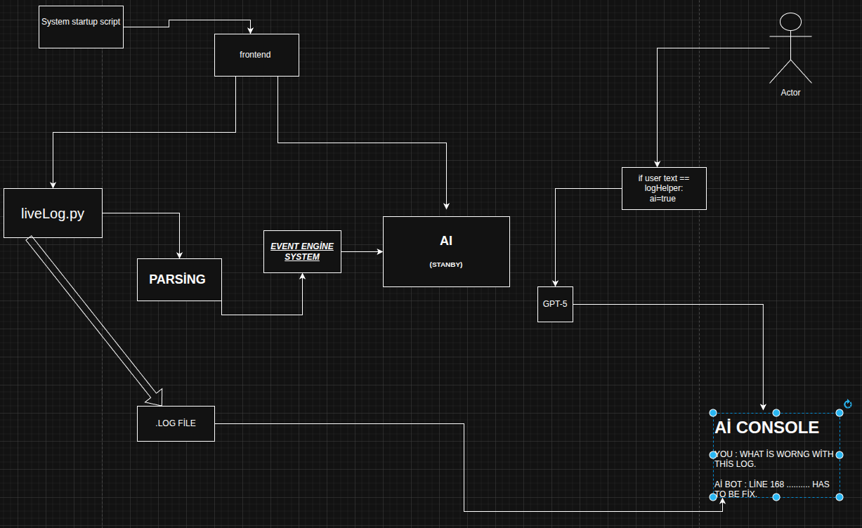 The point is give user more info abaut the logs like ( " AI :this code broke from 145 lines and fix protocol is ......")