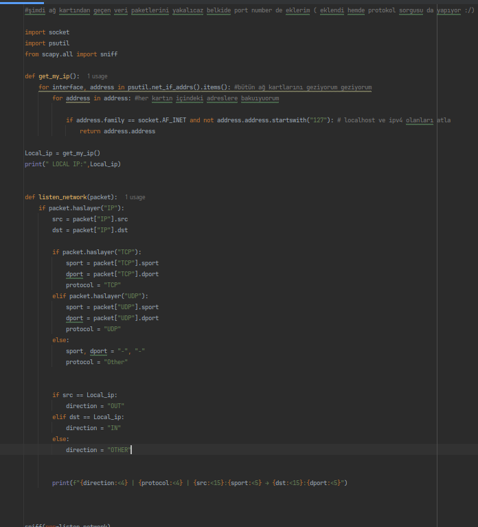 I wrote a network monitor that can queries port protocol and only when its UDP or TCP code can show port number . Also code checks IP addresses in each packet. If the source IP is my computer, it is outgoing (OUT). If the destination IP is my computer, it is incoming (IN). If neither, it is OTHER