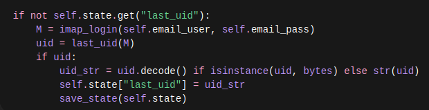 When program runs first time, it takes the current latest email UID, saves it as reference, does not trigger alarm..