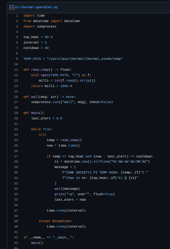 Than i wrote a python script that watch the cpu degree and if its over heat the wall warning coming up the ssh devices.