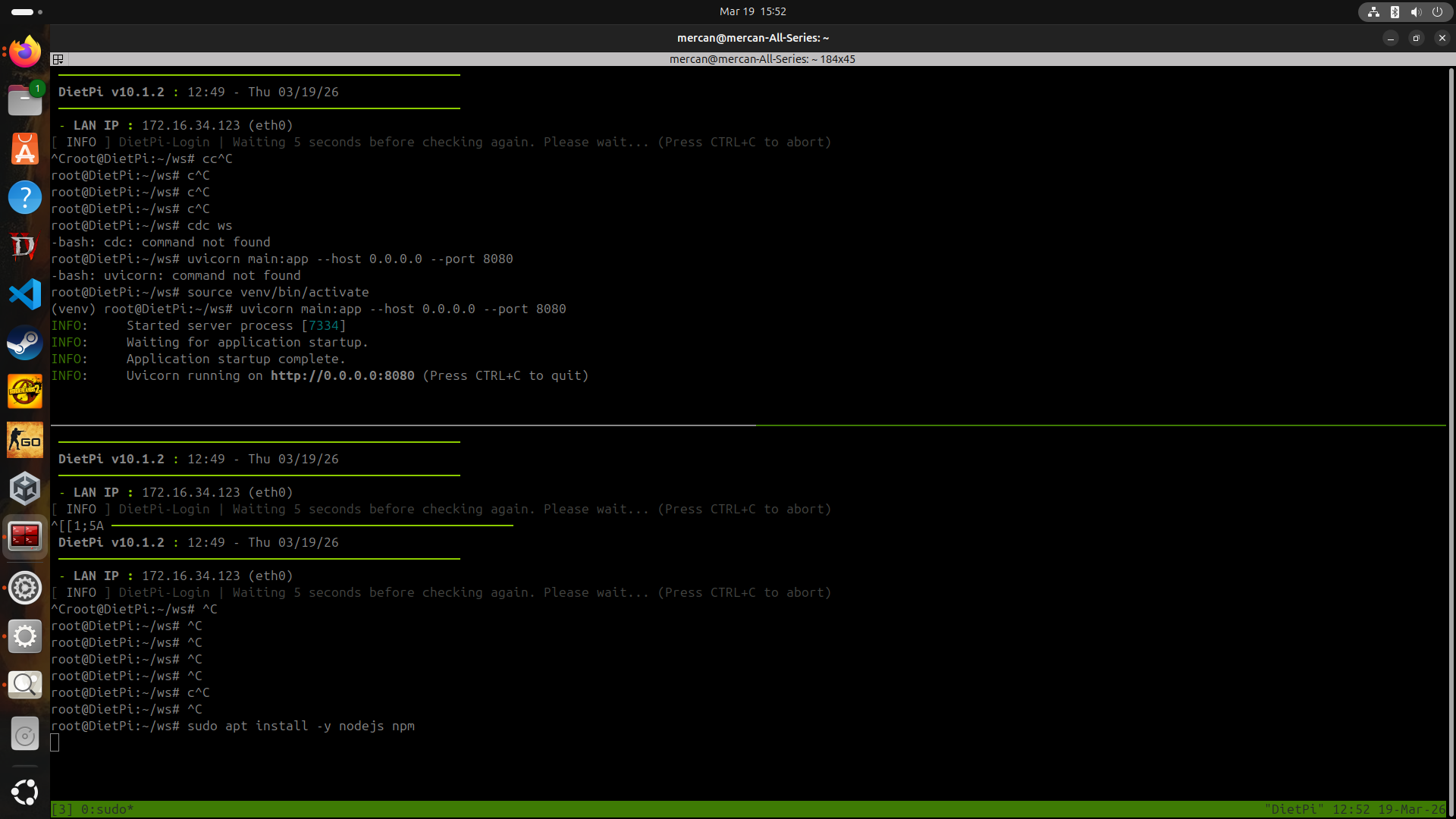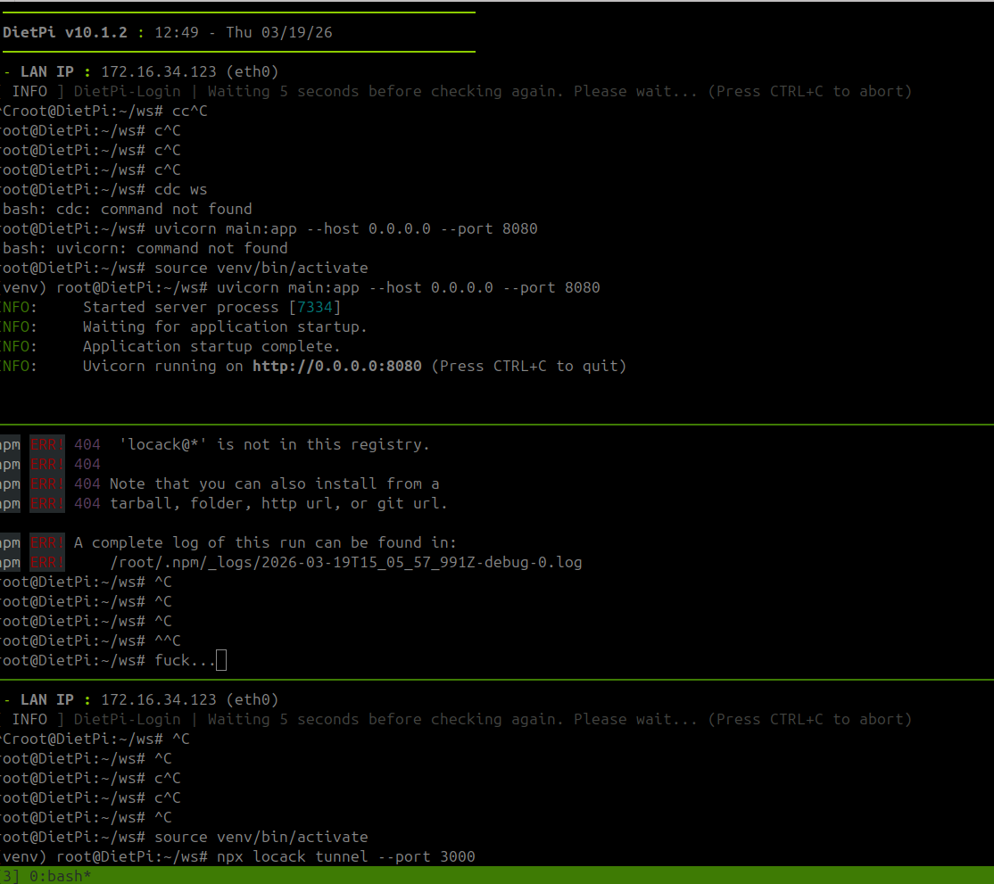 --The token proplem : i have out of token and i cacnt do billing for now and i will change tunnel as local unnel for now . But now i will seet up docker to dietpi ;