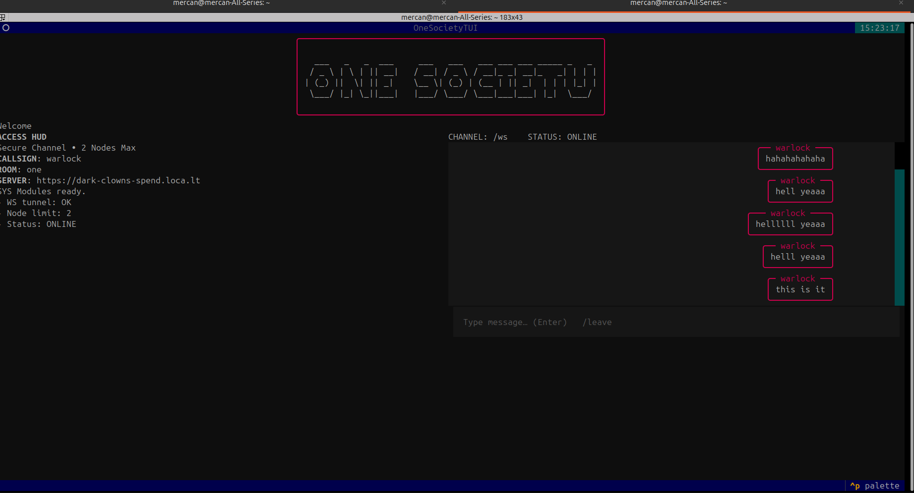 The ngrok tunnel , WS-chatting terminal app